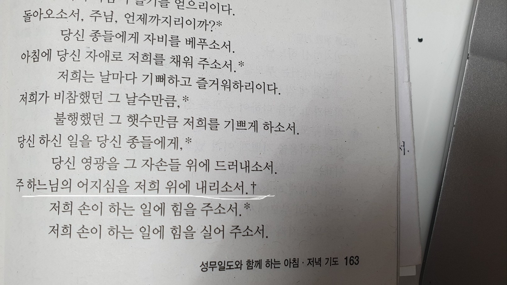 위 내용은 10월 매일 미사 163쪽의 성무일도와 함께하는 아침 기도 일부입니다. '시편 기도와 후렴' 부분인데요, 음송; 당신 하신 일을 종들에게 계송; 당신 영광을 그 자손들 위에 드러내소서.