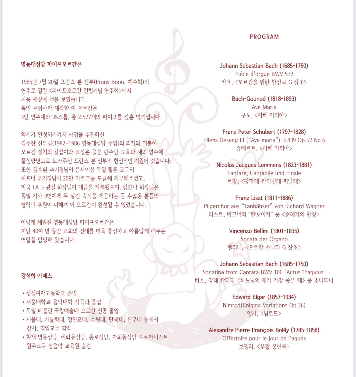명동대성당 파이프오르간 봉헌 40주년 강석희 파이프오르간 연주회 |