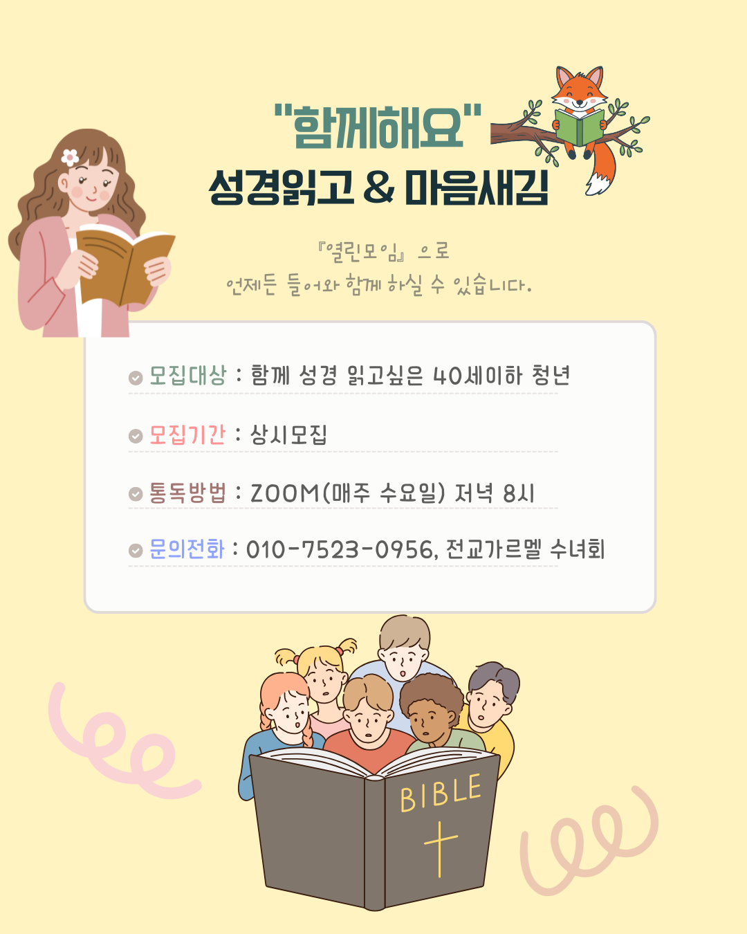 【ZOOM】『성경읽고 & 마음새김 』 함께 읽는 성경모임에 초대합니다!!!
