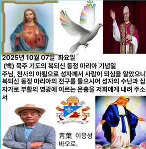 2025년 10월 07일 화요일 (백) 묵주 기도의 복되신 동정 마리아 기념일 16세기 중엽 오스만 제국(현재의 튀르키예를 중심으로 한 이슬람 제국)이 지중해로 세력을 뻗치자, 1571년 10월 7일 그리스도교 연합군 (신성 동맹)은 그리스의 레판토 항구 앞바다에서 벌인 ‘레판토 해전’에서 오스만 제국을 무찔렀다. 그리스도인 군사들은 이 전투에서 크게 승리한 것이 묵주 기도를 통한 성모님의 간구로 하느님께서 함께하신 덕분이라고 여겼다. 이를 기억하고자 성 비오 5세 교황께서 ‘승리의 성모 축일’을 제정하셨다. 1960년 성 요한 23세 교황께서