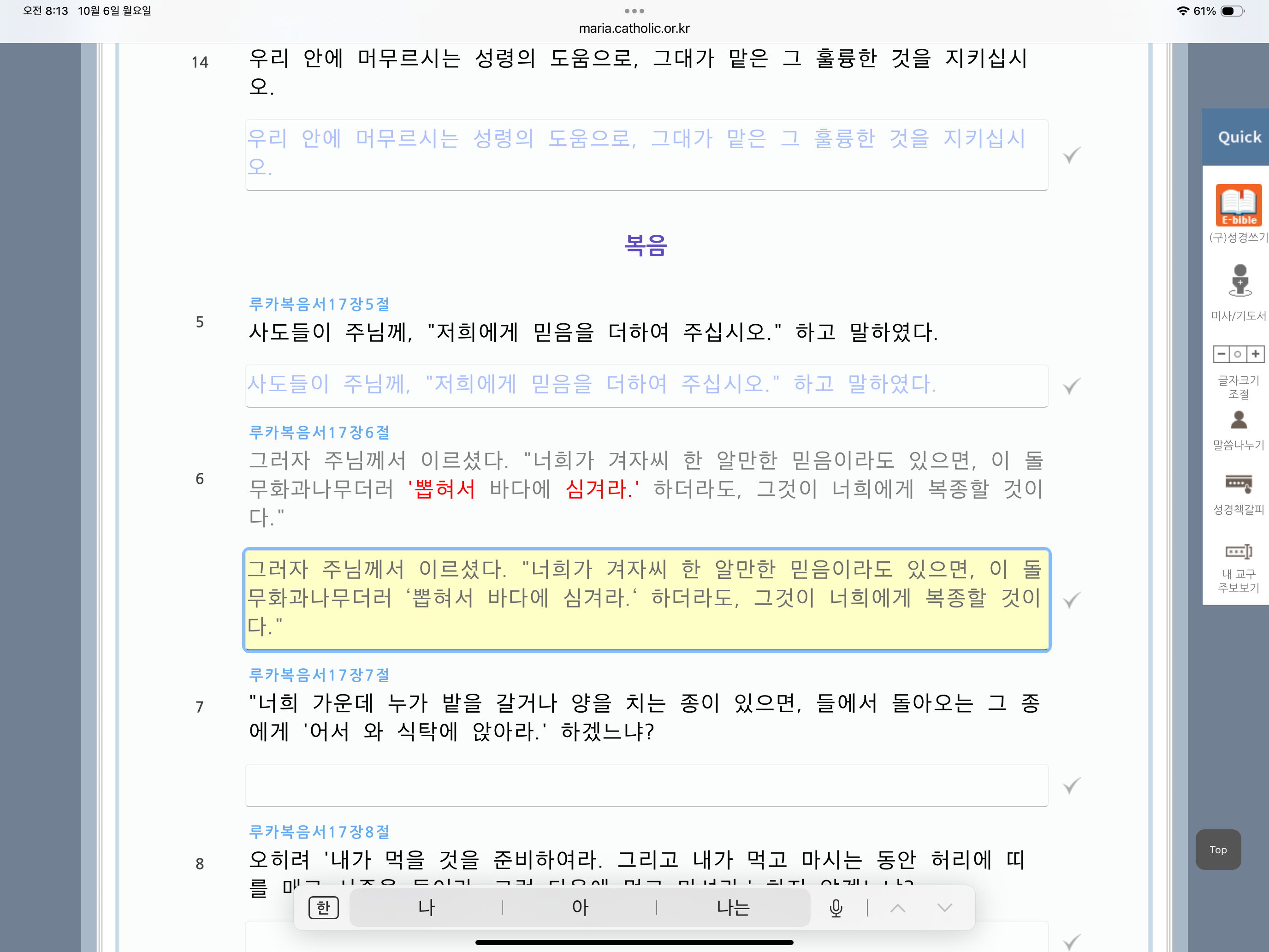다른 날짜에서도 동일한 상황은 발생하여, 작음 따옴표가 나온 다음에는 성경쓰기가 불가능합니다.