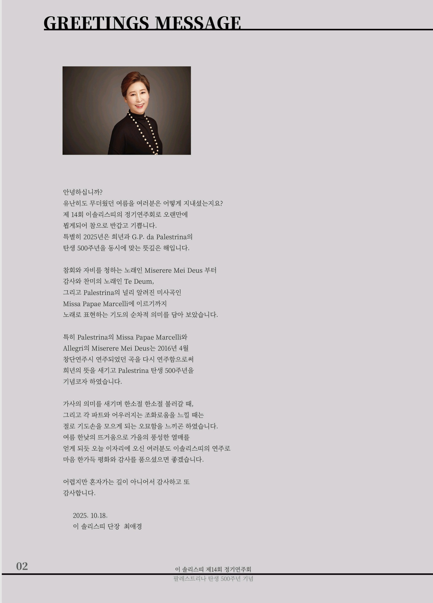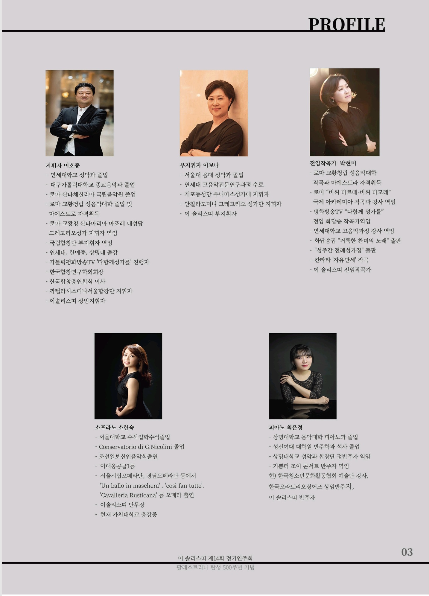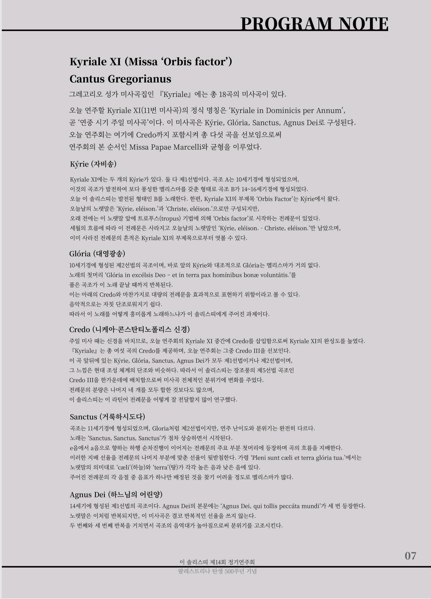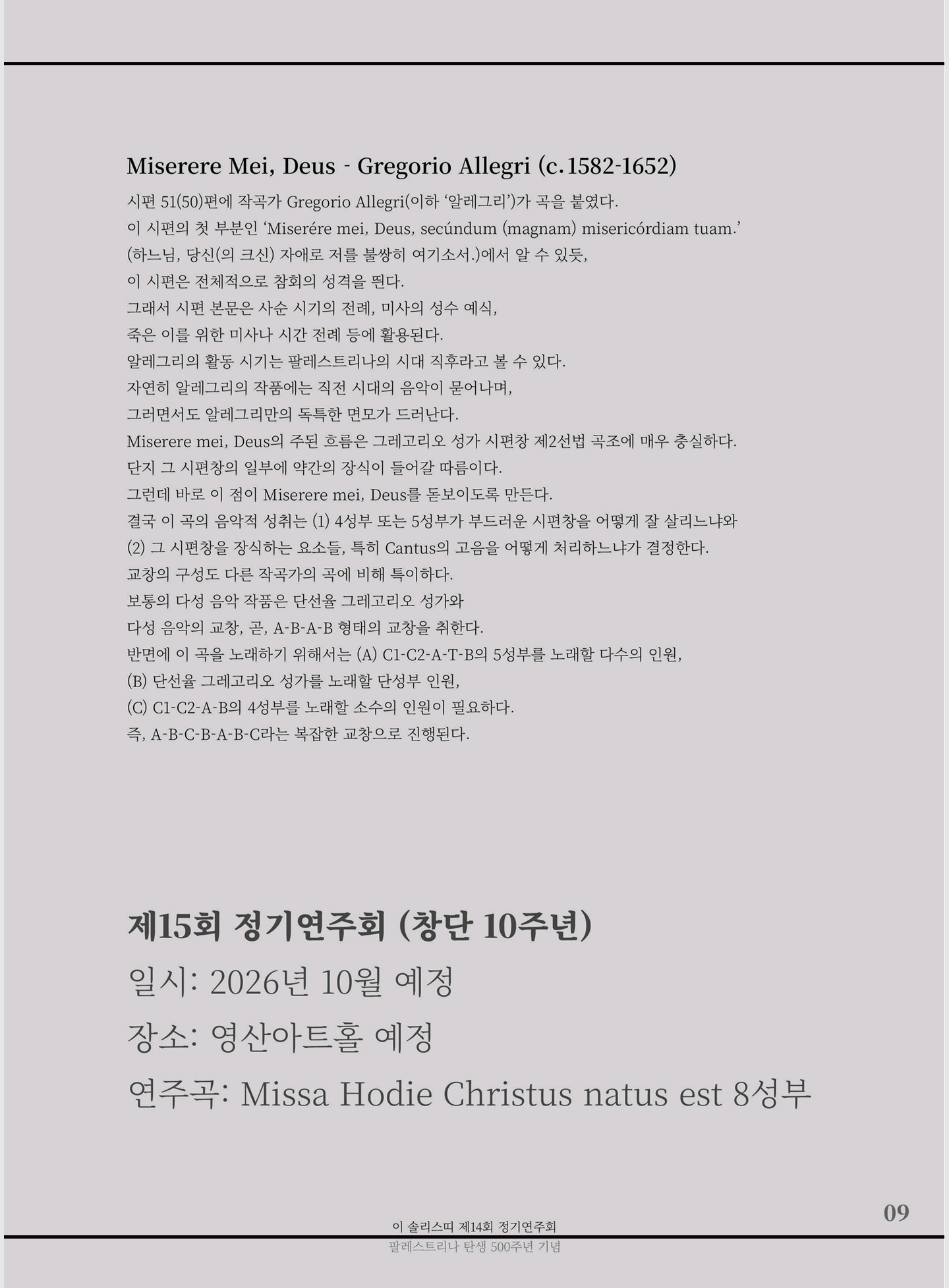 - 이 솔리스띠 제14회 정기연주회 "Missa Papae Marcelli" 프로그램