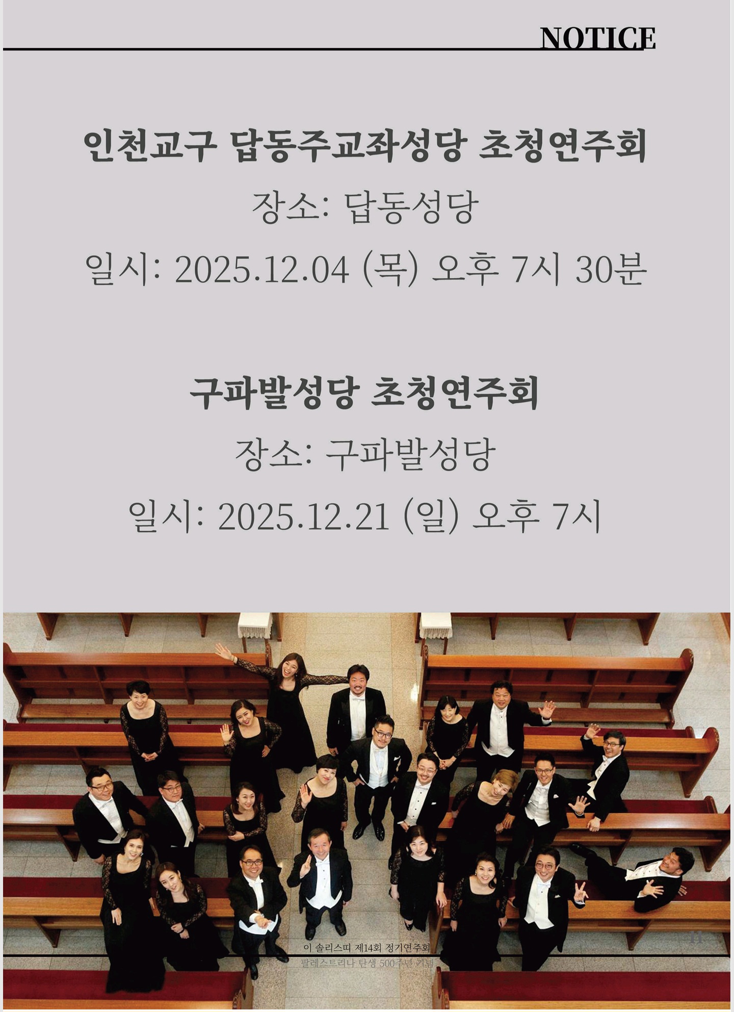 다가오는 18일 광림아트센터 장천홀에서 이 솔리스띠 제14회 정기연주회