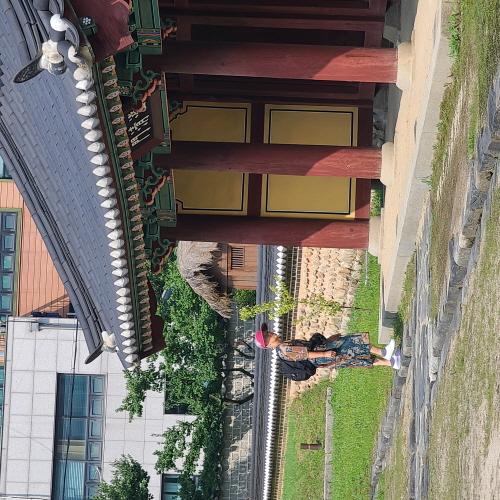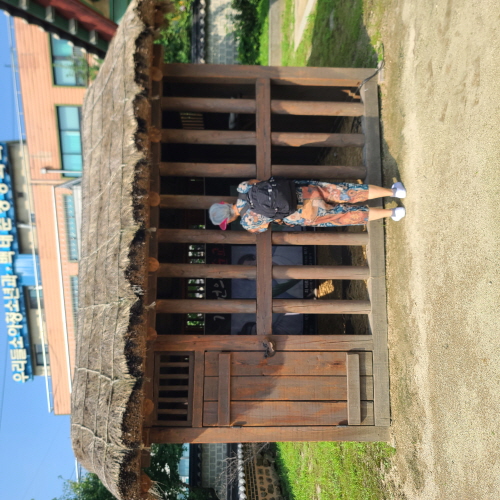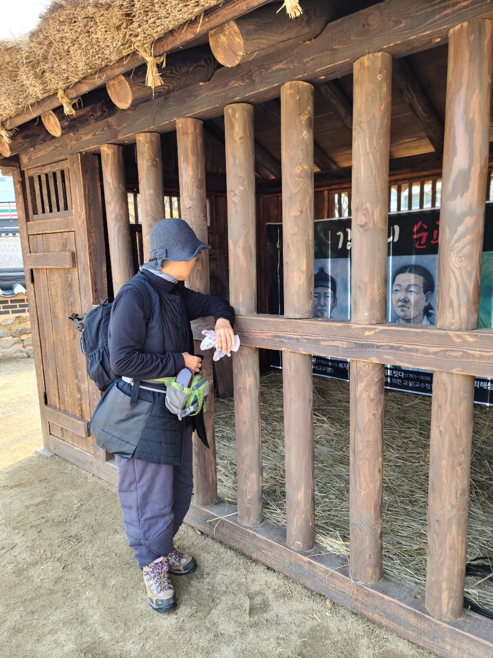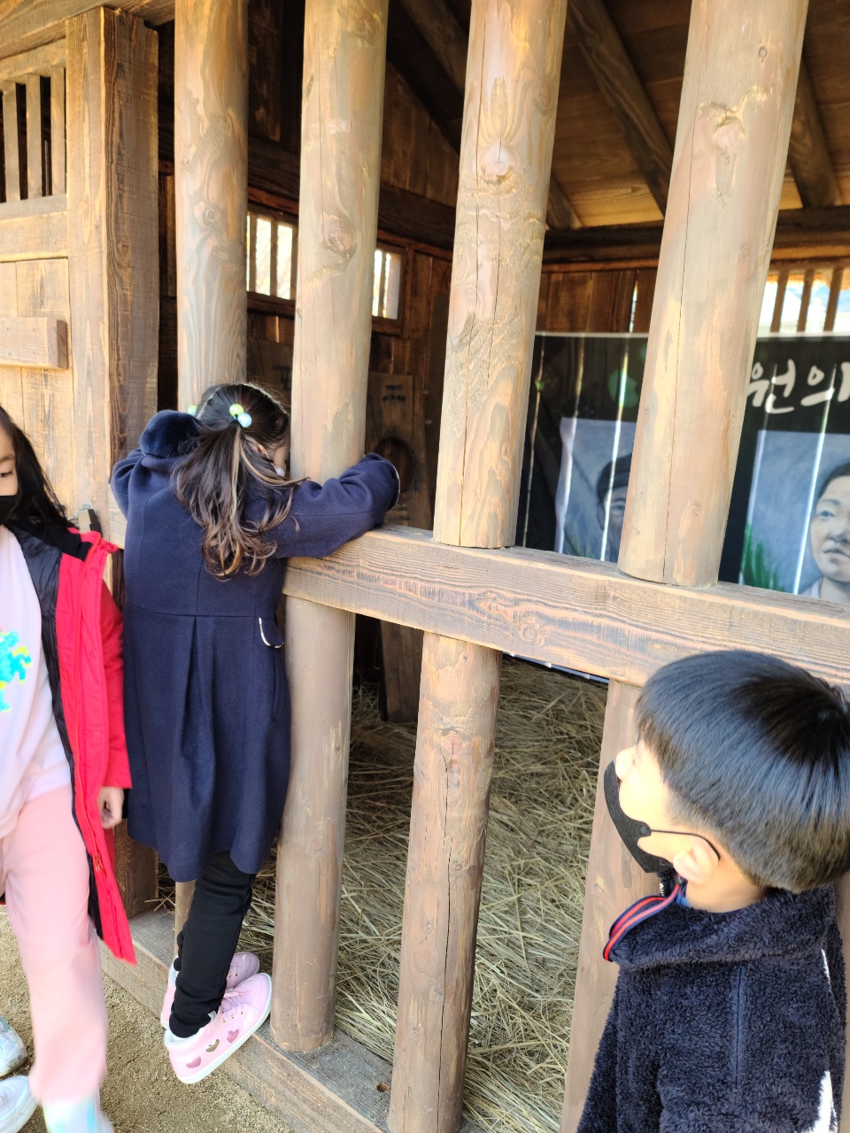옥사앞에서 삼남매와 함께 체험학습이라도 나온듯한 젊은 엄마가