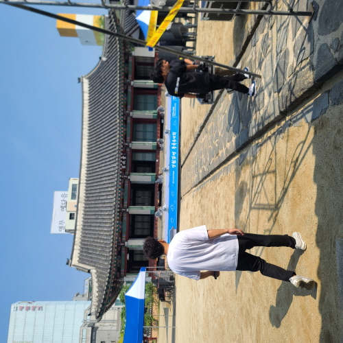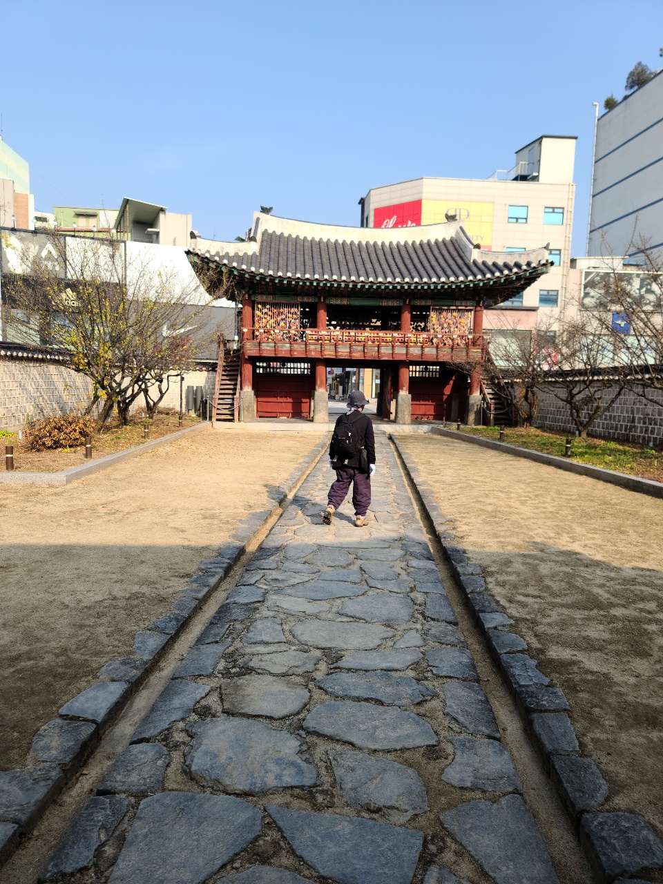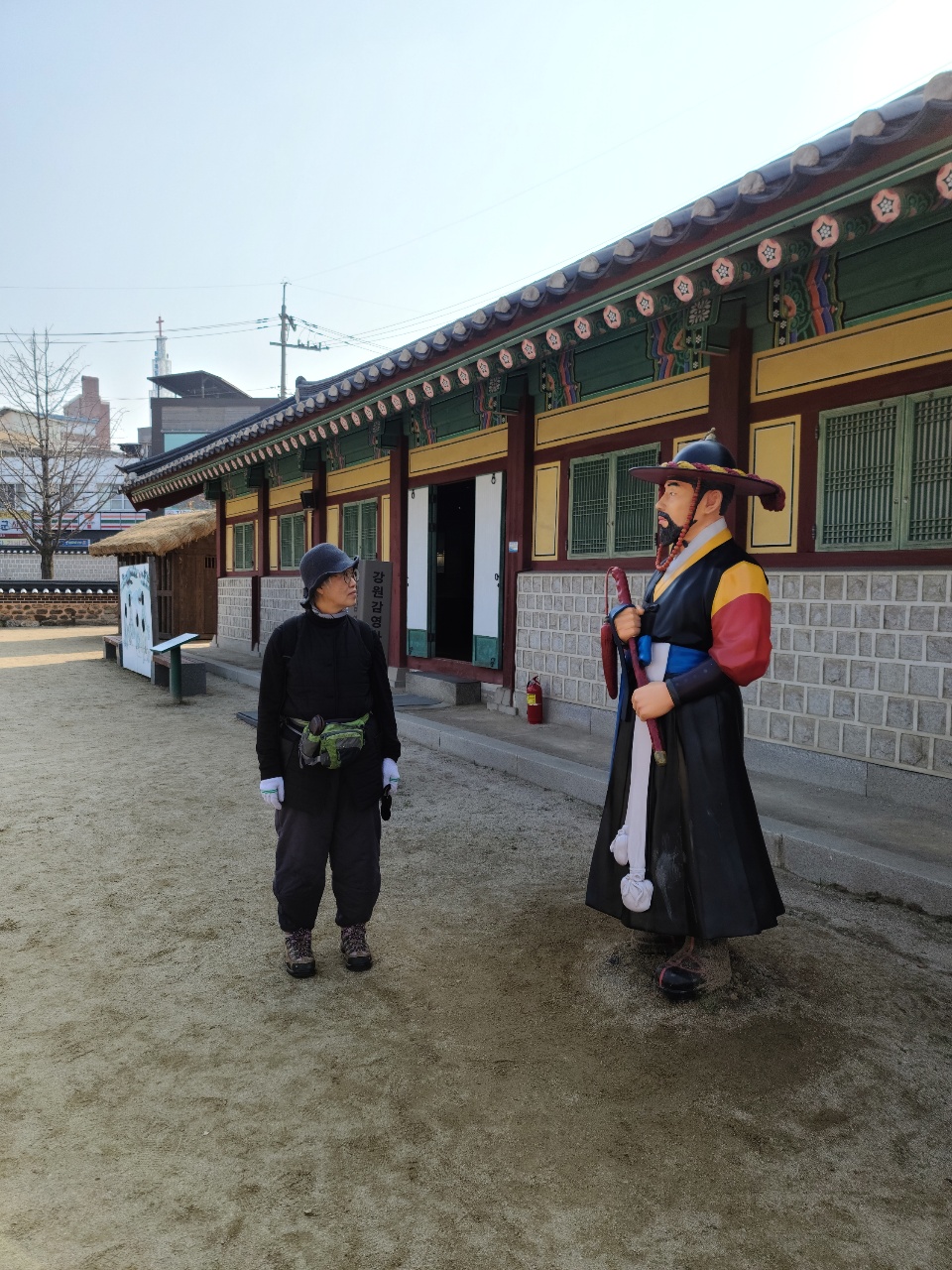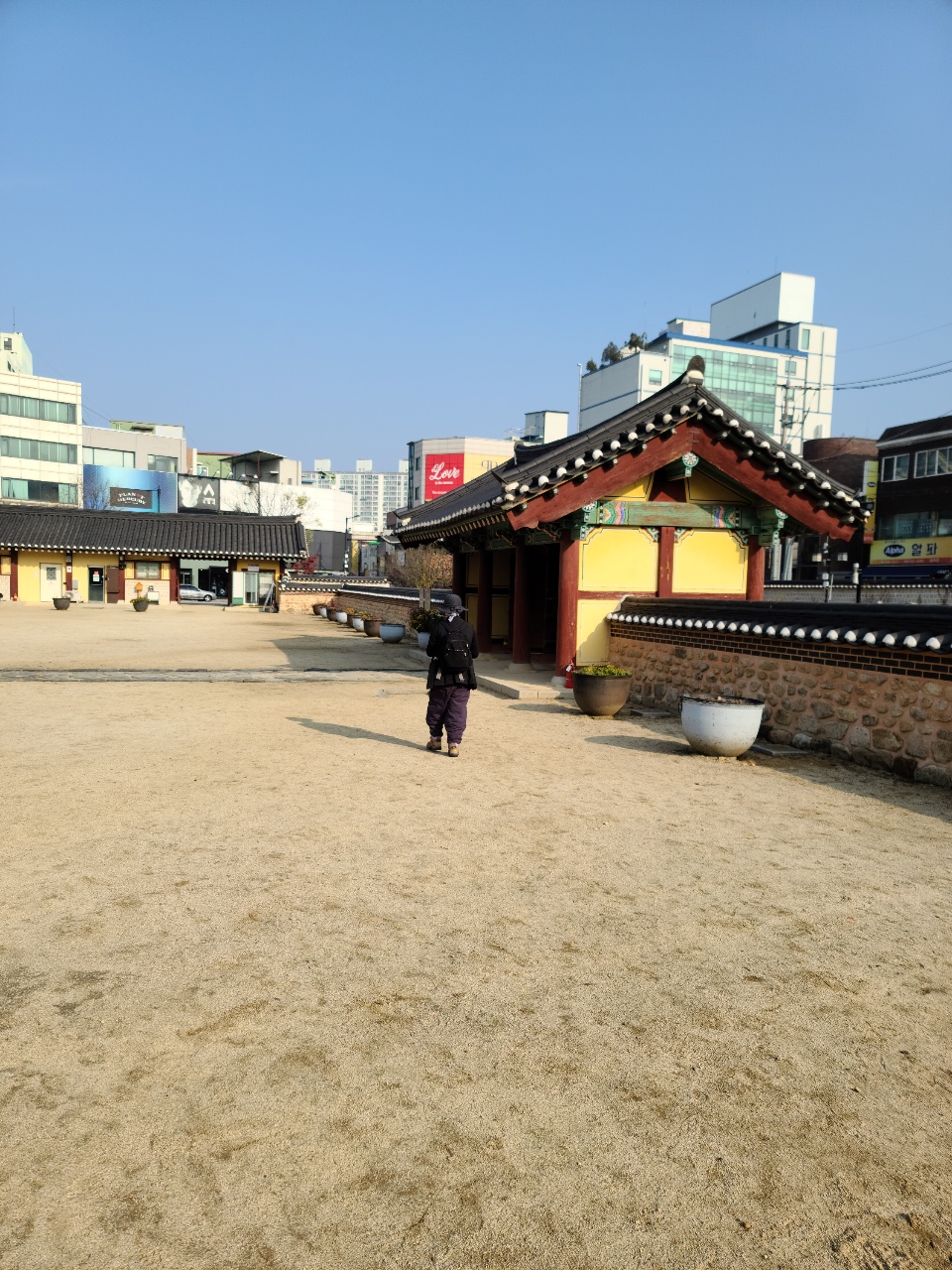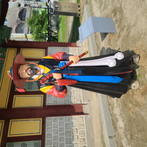 관아 벽 한귀퉁이에 주차를 하고 앞문을 찾아 또 뺑 돌아간다.