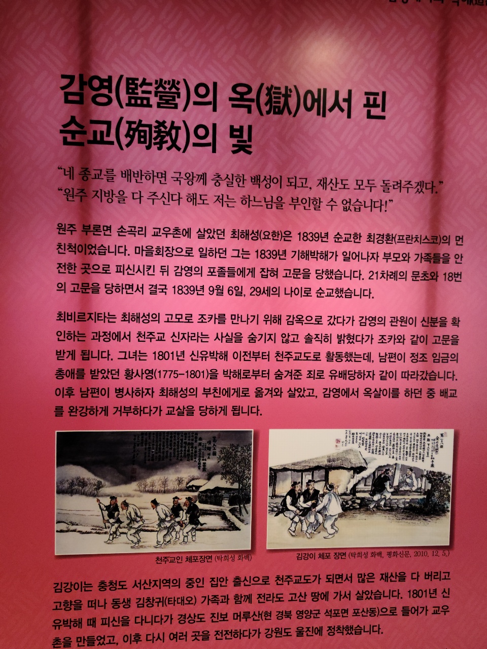 김강이 시몬, 최해성 요한, 최 비르지타 등 많은 순교자들이 강원 감영의 옥에서 혹독한 옥살이를 하다가