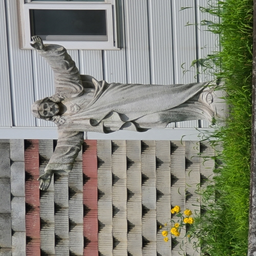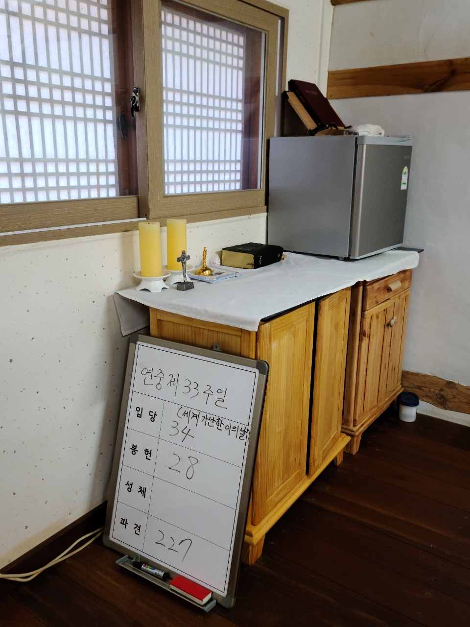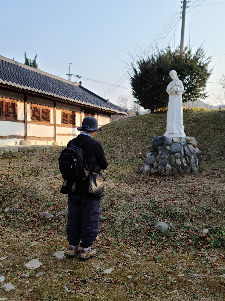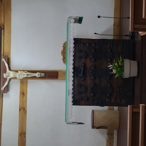 마당에 서계신 성모님과 예수 성심상께 절하고 곧장 곰팡내 은은한 공소안으로 들어가