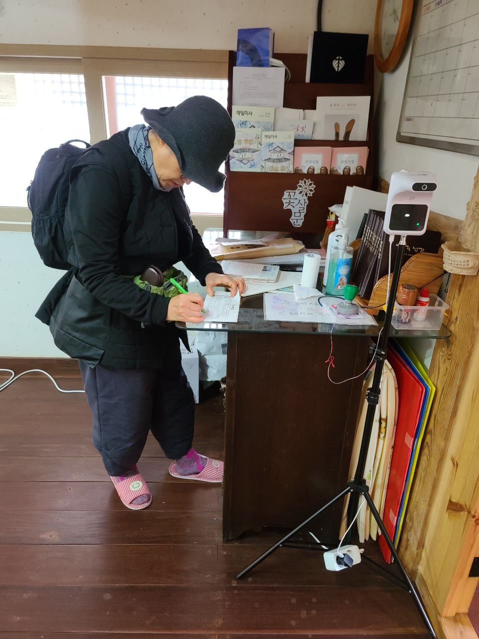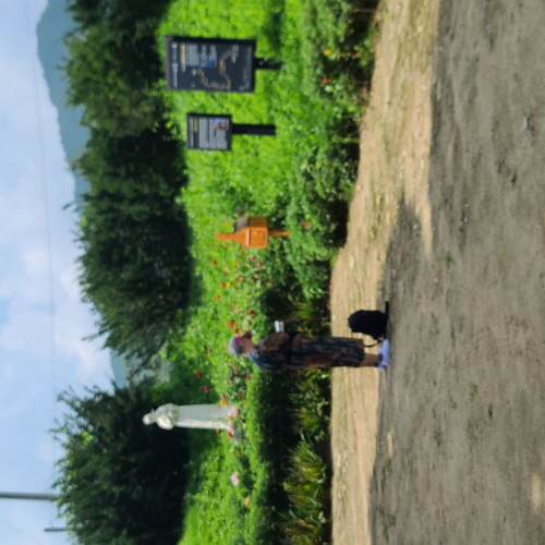 이른 아침부터 길나서 21킬로 비르짓다길 걸어오며 쓰레기 줏어가며 왔단다.