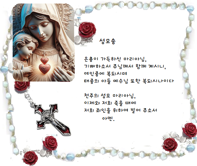10월 새벽, 고요한 빛 깨어나는 밤에 별 같은 묵주알들, 희망이 시작되는 기쁨의 길, 우리의 죄를 치유하는 슬픔의 길, 우리를 자유롭게 하는 빛나는 진리, 영원히 영광스러운 사랑. 은총이 가득하신 마리아여, 저희를 당신의 아드님께 인도하소서, 묵주알 하나하나가 “예”가 되어, 그분의 뜻이 이루어질 때까지 믿음, 희망, 사랑, 저희 마음이 기도하도록 가르치소서, 오 어머니여, 저희를 묵주의 길로 이끄소서. 집들이 고요해지고, 촛불이 빛나며, 아이들은 복음의 흐름을 배우고, 온유한 손길은 어머니의 보살핌, 기도 속에 피어나는 인내, 순결하고 겸손하며, 강하고 친절한 사랑, 그리스도께서 마음과 정신 안에 가까이 계십니다. 은총이 가득하신 마리아여, 저희를 당신의 아드님께 인도하소서, 묵주알 하나하나가 “예”가 되어, 그분의 뜻이 이루어질 때까지 믿음, 희망, 사랑, 저희 마음이 기도하도록 가르치소서, 오 어머니여, 저희를 묵주의 길로 이끄소서. 밤이 거세고 차가울 때, 두려움의 사슬은 모두 힘을 잃고, 기름처럼 평화가 물 위에 흐르며, 뱀을 짓밟는 백합이 자랍니다. 십자가와 면류관이 자비 안에서 만나고, 예수님의 이름은 저희의 달콤한 승리. 은총이 가득한 싸움을 위한 용기, 저희를 위하여 기도하시고, 가장 어두운 밤에 빛나소서, 모든 신비 안에서 마음들이 불타오르고, 주님께 영광드리며, 사랑은 저희의 찬미가 되게 하소서. 은총이 가득하신 마리아여, 저희를 당신의 아드님께 인도하소서. 묵주알 하나하나가 “예”가 되어, 그분의 뜻이 이루어질 때까지 믿음, 희망, 사랑, 저희 마음이 기도하도록 가르치소서. 오 어머니여, 저희를 묵주의 길로 이끄소서. 여왕이시며 어머니시여, 새벽이 밝을 때까지, 묵주의 장미들이 저희를 빛으로 인도하소서.