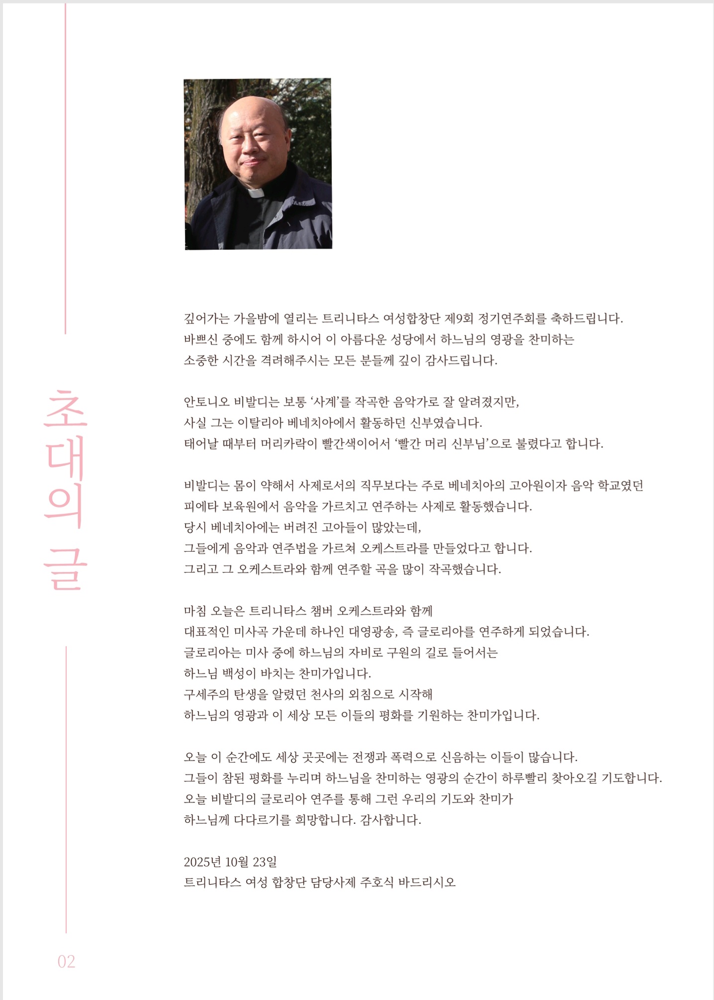 트리니타스 여성합창단 제9회 정기연주회 "A.Vivaldi Gloria RV89" 프로그램 |