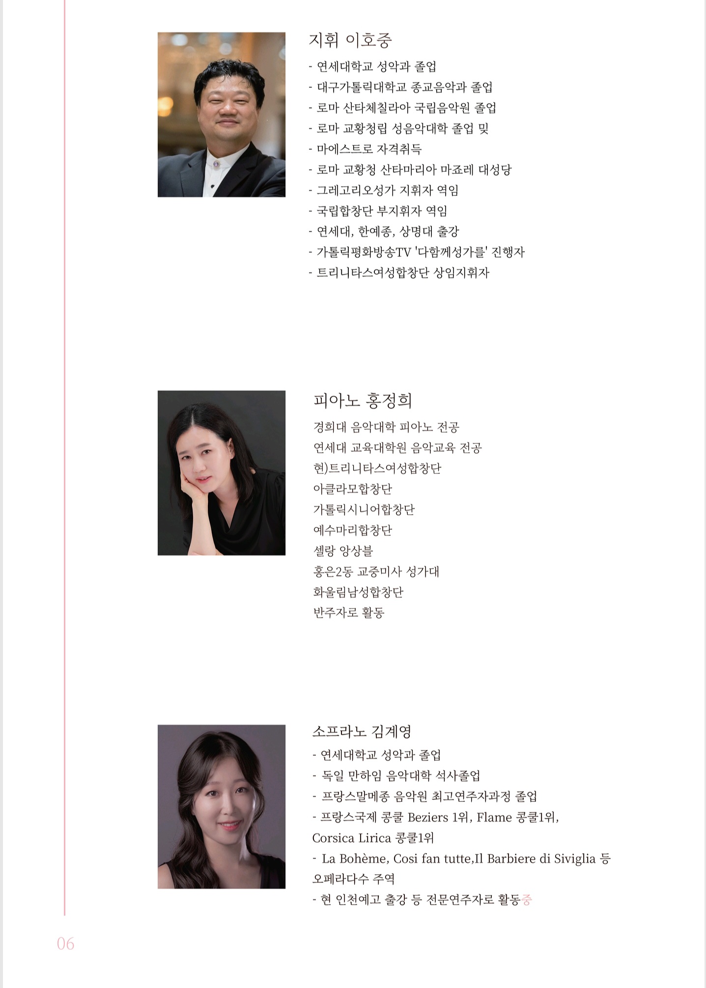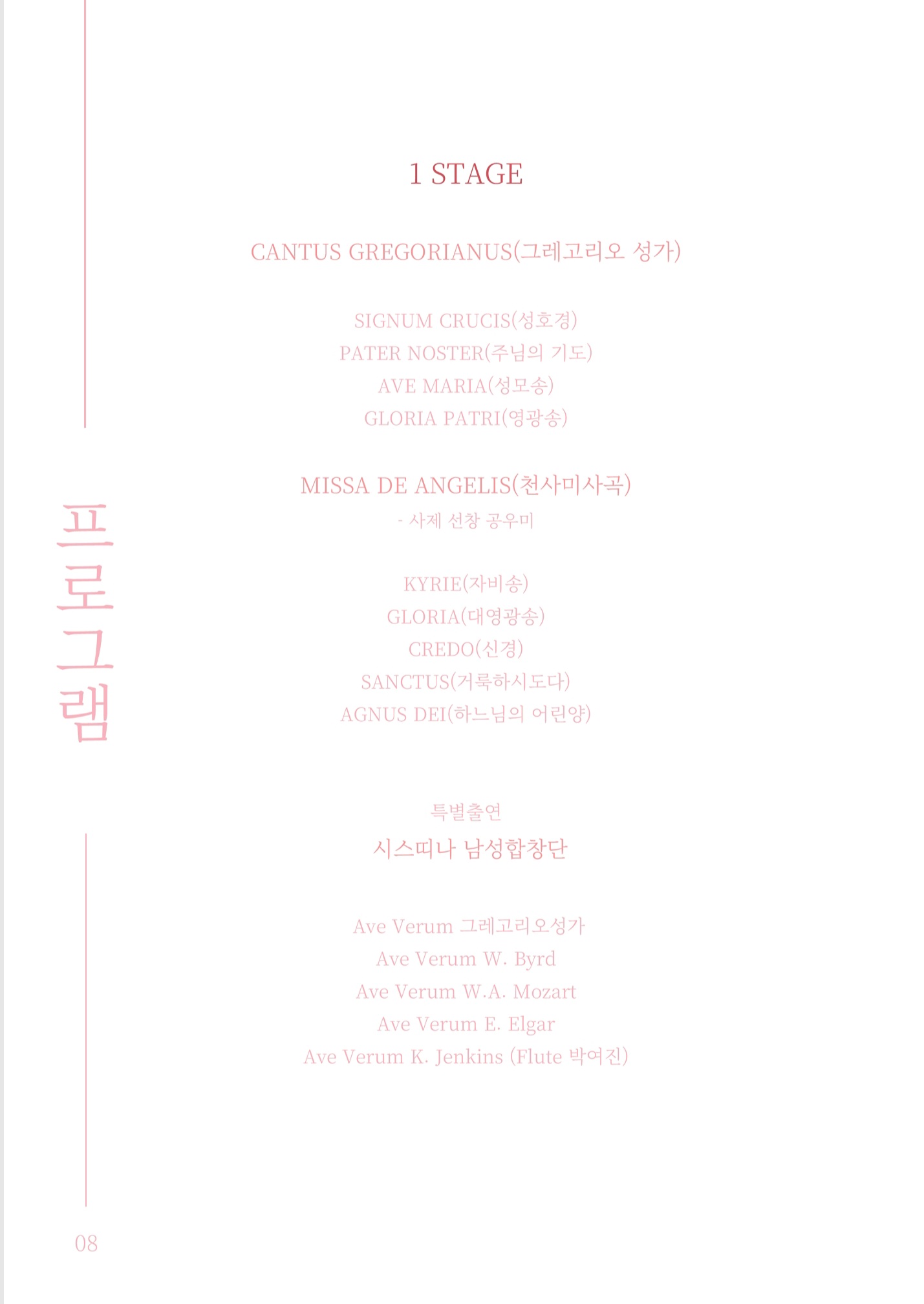 글로리아와 더불어 아름다운 향기가 가득한 성음악의 향연과 함께 특별출연하는 시스띠나남성합창단의 웅장한 남성합창, 소프라노 김계영님의 아름다운 한국 가곡과 오페라 무대까지 감상하실 수 있는 최고의 시간입니다 많은 교우님들의 관심과 기도, 격려를 부탁드립니다고맙습니다