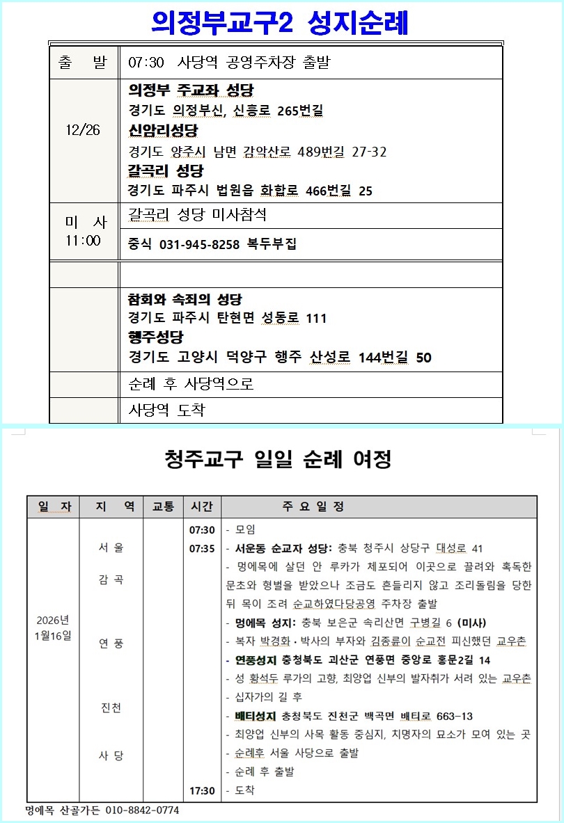 12월 26일 성탄 의정부 2026년 청주교구 순례 |