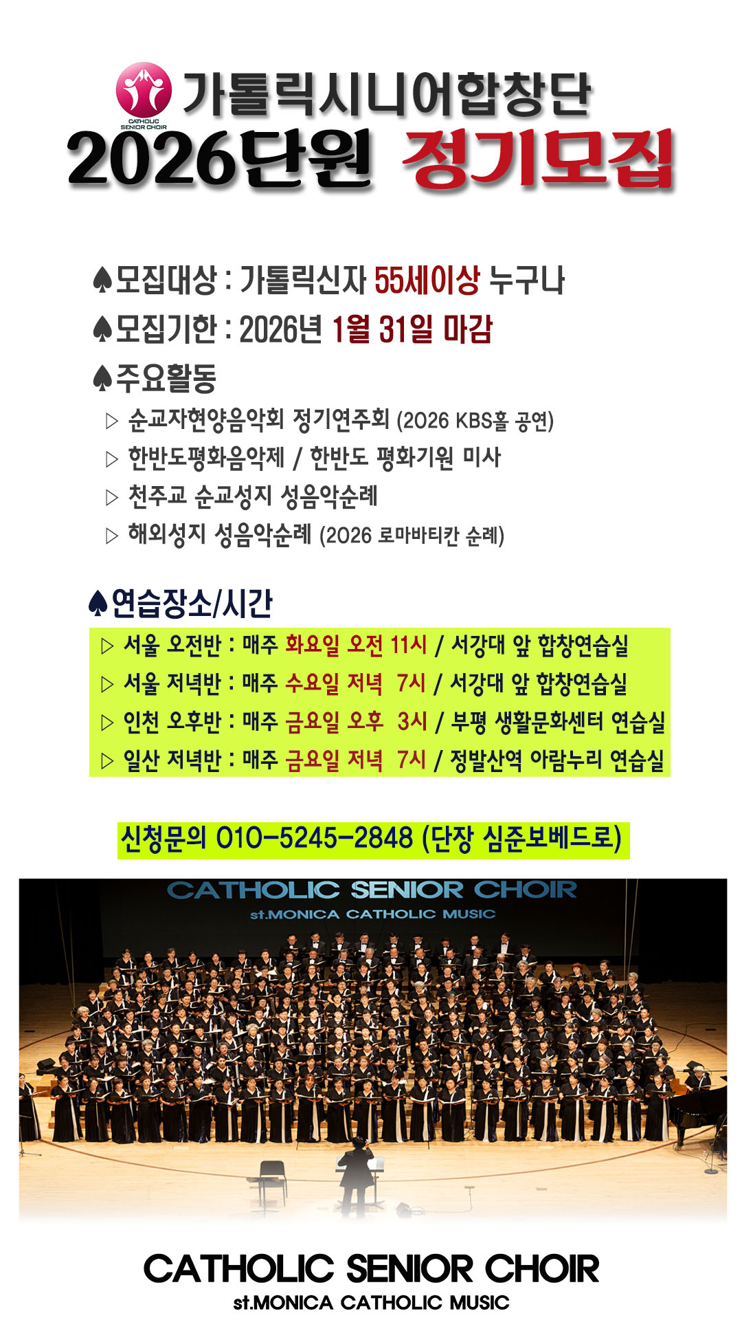 [가톨릭시니어합창단]★2026합창단원 정기모집 공고★서울,인천,김포,수원,일산,파주★1/31마감 |