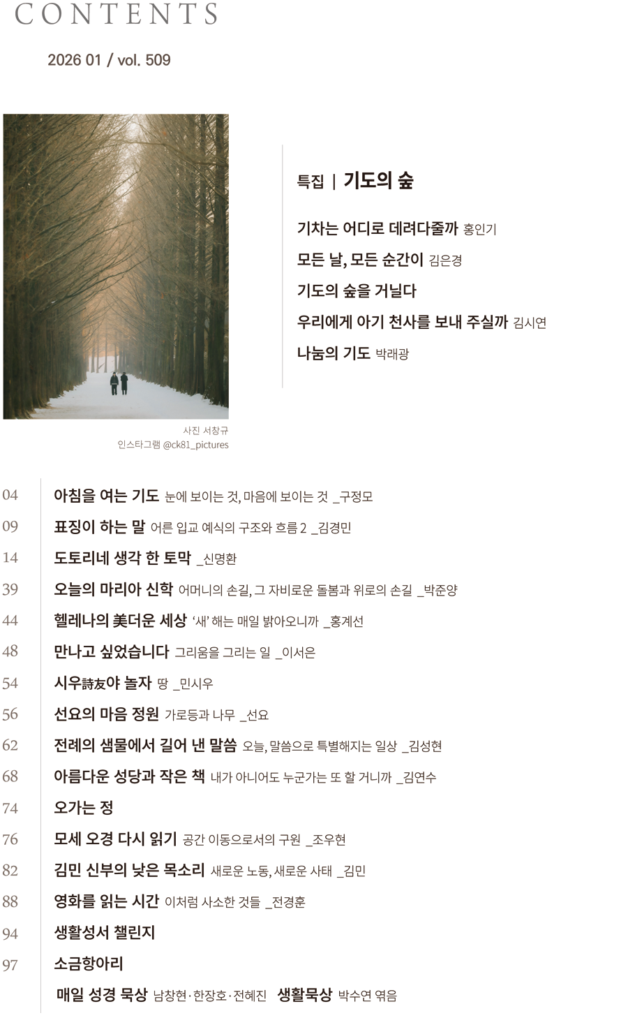 안녕하세요. 생활성서사 입니다. 2026년 1월호와 새해 기도와 함께 시작하시길 소망합니다. [구독하기]