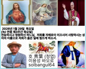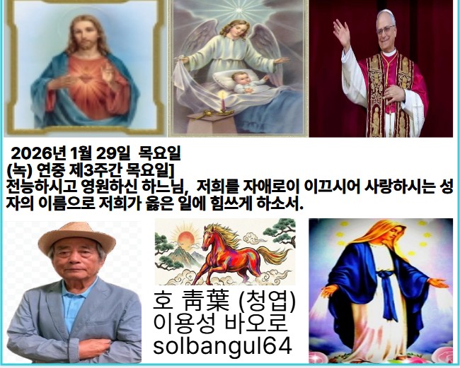 2026년 1월 29일 목요일 녹) 연중 제3주간 목요일 주님께 노래하여라, 새로운 노래. 주님께 노래하여라, 온 세상아. 존귀와 위엄이 그분 앞에 있고, 권능과 영화가 그분 성소에 있네.