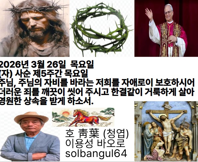 2026년 3월 26일 목요일 (자) 사순 제5주간 목요일 새 계약의 중개자이신 그리스도 돌아가시어, 부르심을 받은 이들이 약속된 영원한 유산을 받도록 빌어 주시네