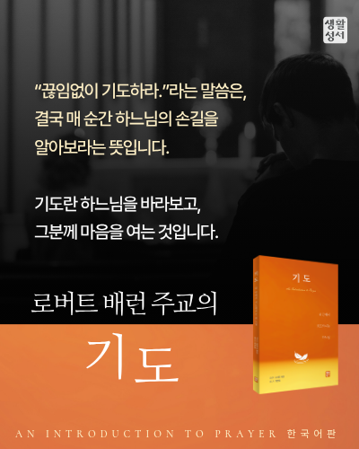 * 기도 - 내 안에서 기도하시는 하느님 [구입하기] “대화를 멈추신 적 없으신 하느님” 기도가 막막한 당신을 위한 친절한 기도 입문서! 로버트 배런 주교의 『기도 - 내 안에서 기도하시는 하느님』은 기도의 모든 과정을 정교하게 집대성한, ‘기도 입문 영성서’라 할 수 있다. 기도의 막막함 속을 걷는 현대인을 위해 기도의 기초적인 정의부터 구체적인 실천 방법까지도 안내해 준다. 하느님께서 우리에게 먼저 말을 건네셨다는 본질적인 메시지를 전하고 있는 이 책은 독자들의 신앙을 단순한 “종교 활동”에서 “살아 있는 하느님과의 친밀한 영적 관계”로 변화시켜 줄 것이다.