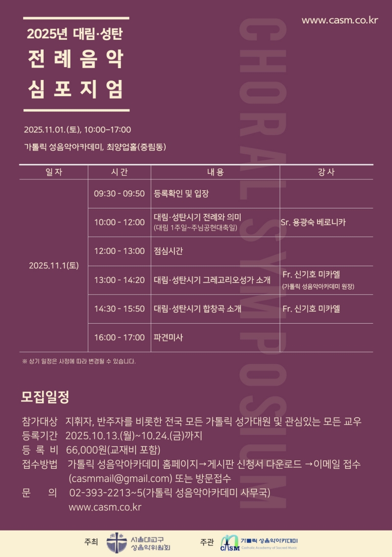- [가톨릭 성음악아카데미] 2025년 대림·성탄 전례음악 심포지엄 신청 안내