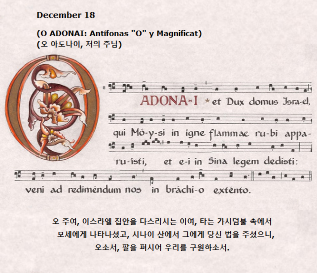 12월 17일부터 12월 23일 ‘주님의 탄생 전야 전날’까지 7일 동안 불리는 이 노래를 O-안티폰(O-Antiphon)이라고 하는데, 그 이유는 7곡 모두 감탄의 의미로 알파벳 “O” 로 시작되기 때문이다.