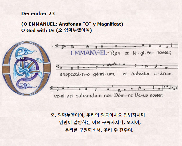 오, 임마누엘이여, 우리의 임금이시요 입법자시며 만민이 갈망하는 이요 구속자시니, 오시어, 우리를 구원하소서. 우리 주 천주여.