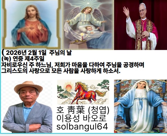 2026년 2월 1일 주님의 날 (녹) 연중 제4주일 오늘은 연중 제4주일입니다. 주님께서는 마음이 가난한 이들과 의로움 때문에 박해받는 사람들에게 하느님 나라의 기쁨을 약속하셨으니, 교회가 성령의 힘으로 복음의 작은 이들처 주님을 따르게 해 주시기를 청합시다.