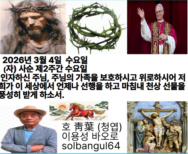 2026년 3월 4일 수요일 (자) 사순 제2주간 수요일 주님, 저를 버리지 마소서. 저의 하느님, 저를 멀리하지 마소서. 주님, 제 구원의 힘이시여, 어서 저를 도우소서.