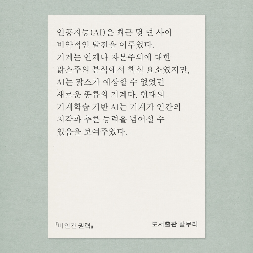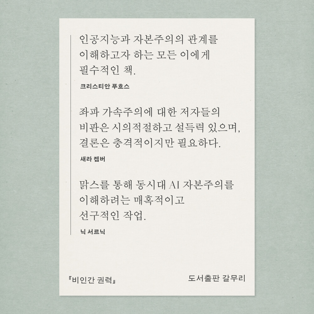 - 새 책! 『비인간 권력 : 인공지능, 그리고 자본주의의 미래』 닉 다이어-위데포드·아틀레 미콜라 쇼센·제임스 스타인호프 지음, 안호성 옮김