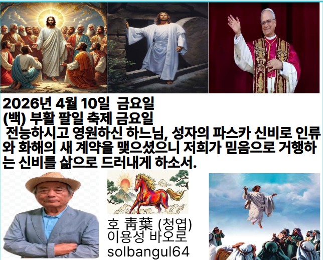 2026년 4월 10일 금요일 (백) 부활 팔일 축제 금요일 주님은 당신 백성을 안전하게 이끄시고, 그 적들을 바다에 빠뜨리셨네. 알렐루야.