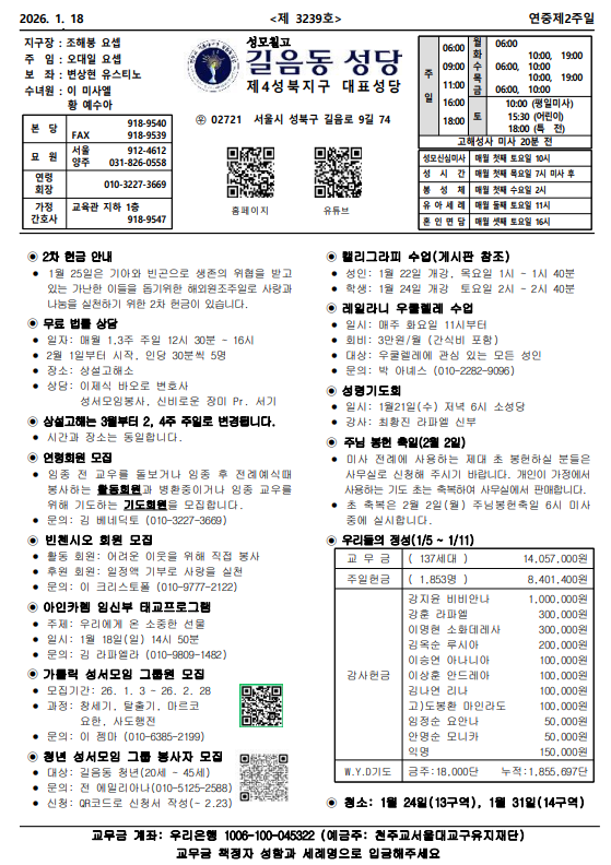 길음동성당 주보게시판입니다