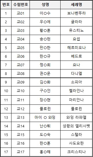 *교리교육학과 합격자 명단