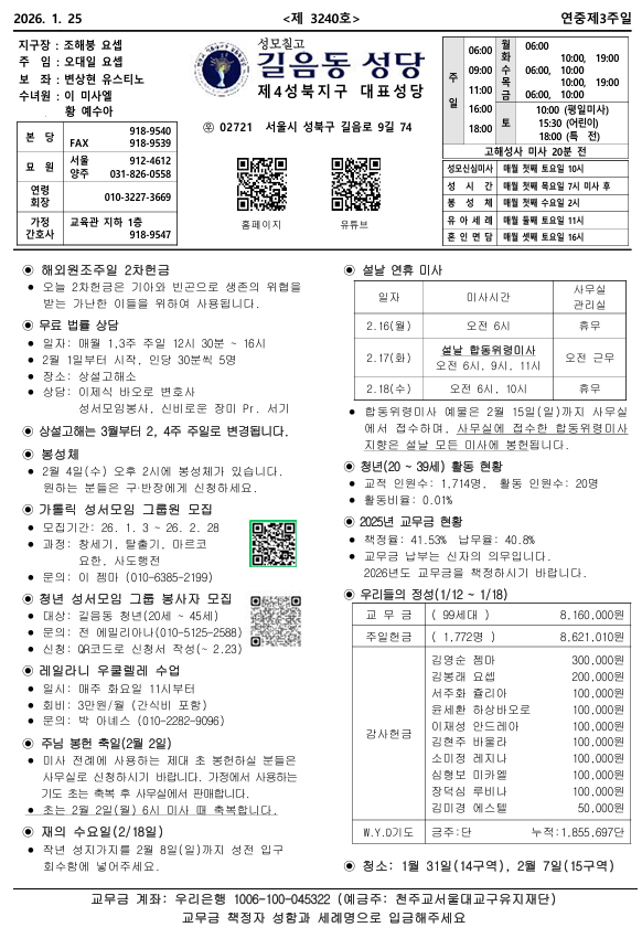 길음동성당 주보게시판입니다