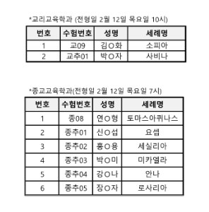 - 교리교육학과/종교교육학과:2026년2월12일(목) 10시/19시