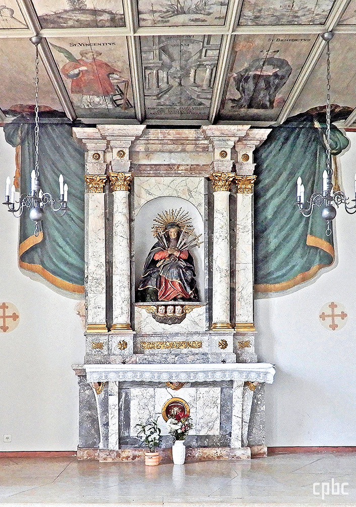 이곳에는 바젤의 수호성인 성 판탈루스·성 우르술라의 성유물도 모셔져 있습니다. 바젤이 종교개혁 이후 신교 중심 도시가 되면서 바젤 대성당에 소장되어 있던 성유물은 한동안 제의실 벽장 속에서 잠들어 있었습니다. 그러다가 1833년 바젤주가 바젤시와 외곽 지역으로 분리되면서, 일부 성유물을 가톨릭의 정신적 지주였던 마리아슈타인 수도원으로 옮겨 모시게 된 겁니다.