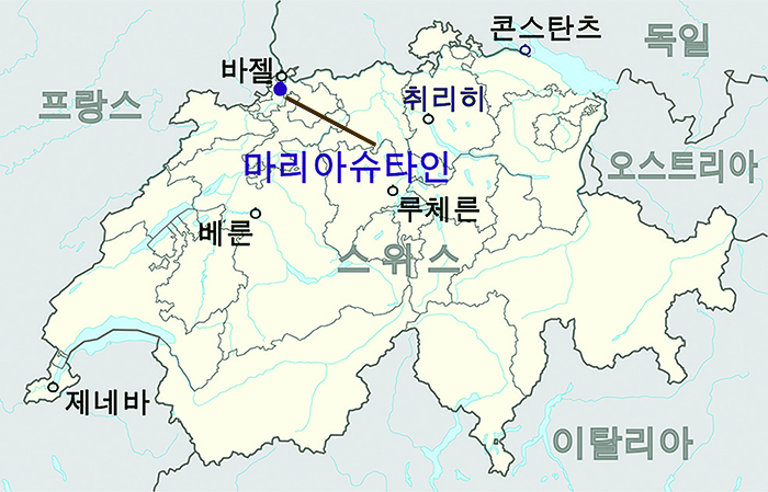 스위스·프랑스·독일 3국 접경에 있는 바젤을 떠나 라이멘탈의 완만한 언덕길을 오르면 순례자의 노래가 바람에 실려옵니다. “우리는 무리 지어 언덕 위로 올라갑니다. 구름과 바람이 뒤따라오네. 하느님 당신을 찾으려 하나이다. 키리에 엘레이스.” 오늘 순례지는 이 노래의 목적지인 마리아슈타인 수도원입니다. 17세기 중반, 이곳에서 남동쪽으로 25㎞ 떨어진 바인빌 베네딕도회 수도원이 수도 생활의 부흥을 꿈꾸며 새로 마련한 보금자리지요.