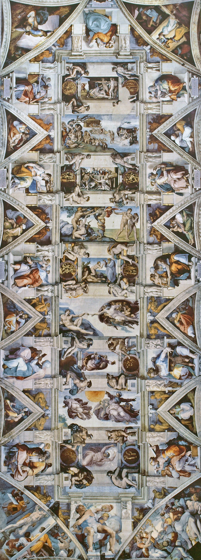 하지만 1508년 그는 교황으로부터 <시스티나 경당의 천장화> 제작을 의뢰받았습니다. 그동안 조각에 전념한 탓에 회화가 낯설었고 브라만테도 그것에 의문을 품었지만, 그는 5년 동안의 고된 작업 끝에 1512년 말 천장화를 완성하였습니다. 몇 달 후 율리오 2세 교황은 사망하고, 메디치 가문 출신의 레오 10세가 교황으로 선출되었습니다.