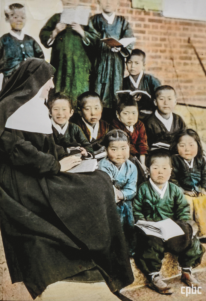 - ‘툿찡 포교 베네딕도 수녀회 수녀와 공부하는 어린이들’, 1925~1944년, 랜턴 슬라이드, 국외소재문화유산재단, 독일 상트 오틸리엔수도원 아카이브 소장 한국 사진.