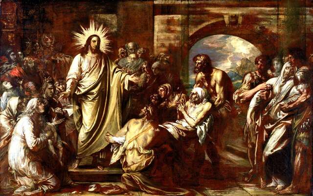 카파르나움에서 예수님은 중풍 병자를 고치셨다. 예수님의 행적이 퍼졌고 예수님 일행이 묵고 있는 집 주변은 사람들로 문전성시를 이루었다. 사람들이 문 앞까지 빈틈없이 들어섰다. 모두 예수님의 말씀을 듣고 아픈 몸을 치유하기 위해 모인 사람들이었다. 그런데 중풍으로 누워있던 사람을 친구 네 명이 데려와 예수님을 만나려고 했지만, 너무 많은 인파로 접근이 어려웠다.