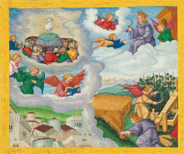 - 독일어로 된 가장 오래된 그림 신약성경인 「오트하인리히 성경(Ottheinrich Bible)」 중 <어린양의 승리와 마지막 수확>