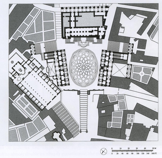 - 캄피돌리오 광장 평면도. 양옆의 팔라초가 정면에 있는 팔라초 방향으로 벌어진 사다리꼴임을 확인할 수 있다. 출처 wikiarquitectura
