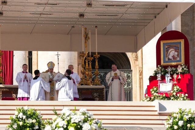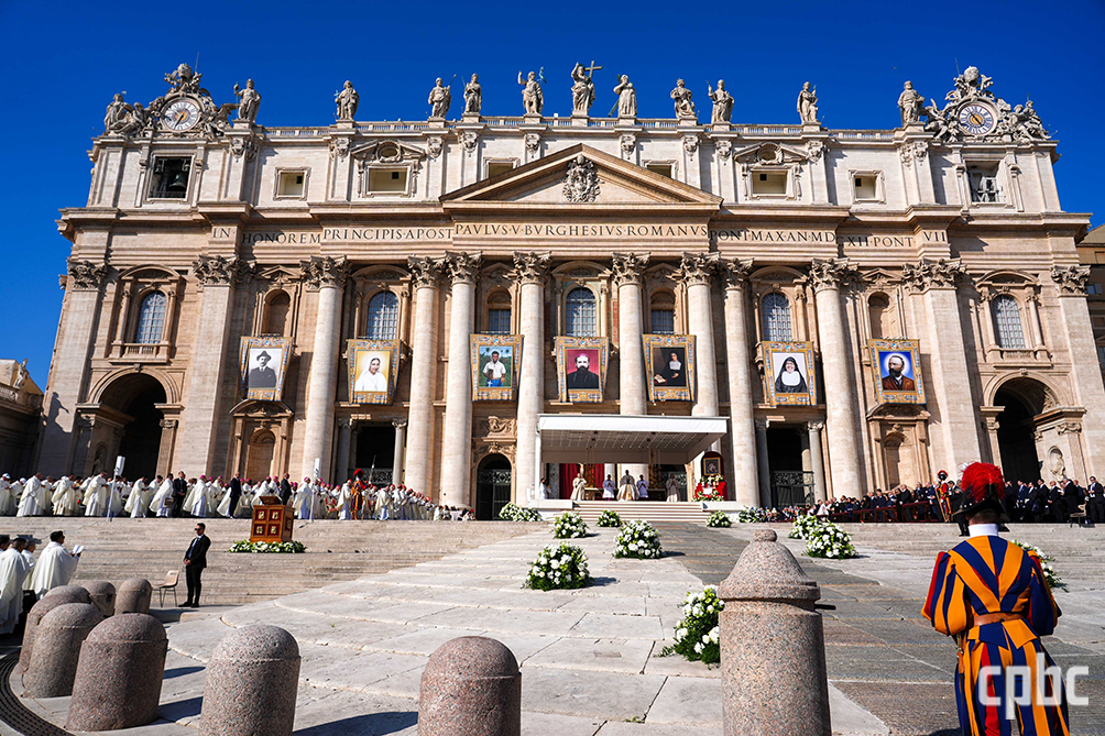 - 레오 14세 교황이 10월 19일 로마 성 베드로 광장에서 ‘아마존 밀림의 선교사’ 마리아 트롱카티 수녀를 비롯한 7위의 시성식을 주례하고 있다. CNS