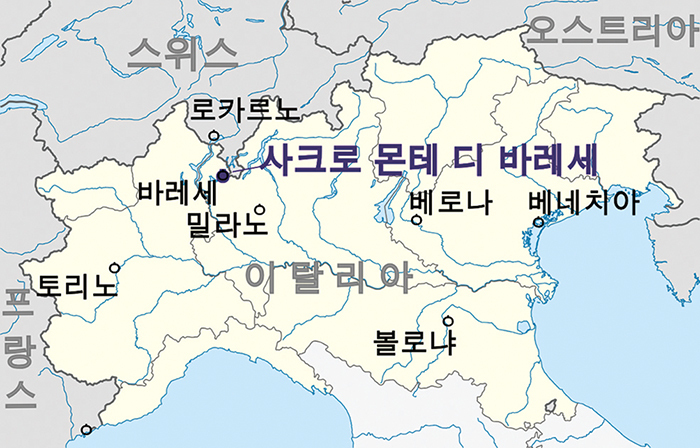 15세기 후반부터 이탈리아 북부 피에몬테와 롬바르디아 지역에 로마나 예루살렘 같은 성지를 직접 순례하기 어려운 이들을 위해 일곱 ‘성산(Sacro Monte, 聖山)’이 조성됩니다. 사크로 몬테 디 바레세, 즉 ‘바레세의 성산’도 그중 하나로 17세기 밀라노대교구가 바레세 인근에 조성한 성모 성지입니다. 입구부터 정상까지 묵주기도의 신비를 상징하는 14개 소성당과 정상의 산타 마리아 델 몬테 성모 성지로 이뤄져 있지요.
