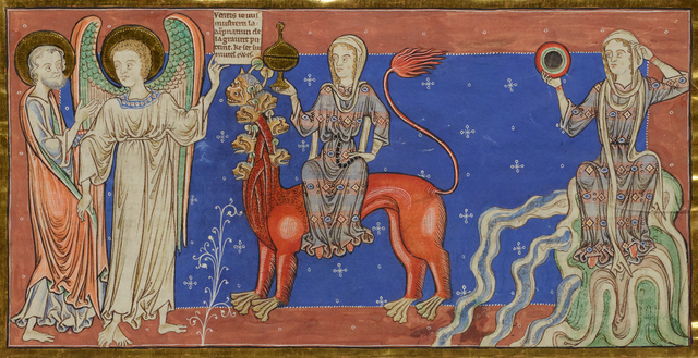 - 1255~1260년경 영국에서 제작된 것으로 추정되는 「트리니티 묵시록」 삽화 중 <큰 도성 바빌론의 여인>. 영국 케임브리지대학교 트리니티 칼리지 도서관