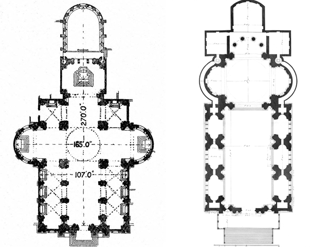 - (왼쪽부터) 산 조르조 마조레 성당와 레덴토레 성당의 평면도. 출처 위키미디어