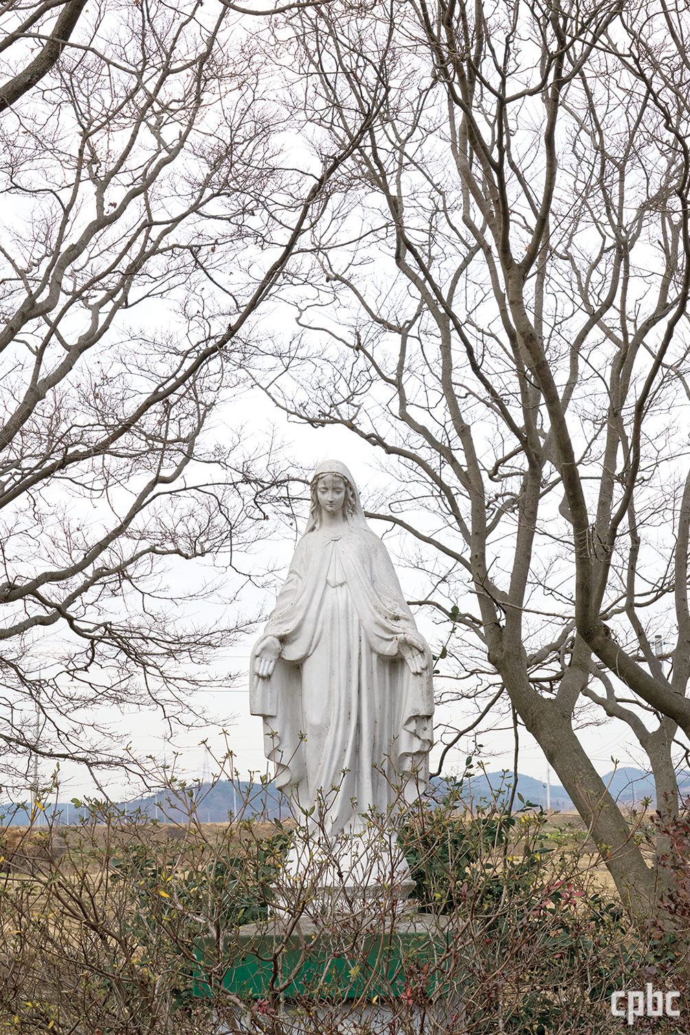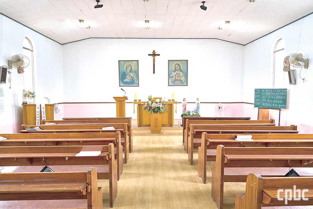 제단 십자가를 중심으로 ‘예수 성심’과 ‘성모 성심’ 성화가 장식돼 있다. 나무 제대도 소박한 공소에 어울리게 특별한 장식이 없다. 제대 옆 작은 탁자에 예수 성심상과 성모상 그리고 성 요한 바오로 2세 교황의 모습이 그려진 도자기 장식 접시가 놓여있는 게 이색적이다. 성당 마당은 제법 넓다. 마당 한 켠에 성모상이 설치돼 있어. 이곳이 가톨릭 경당임을 알려 준다.