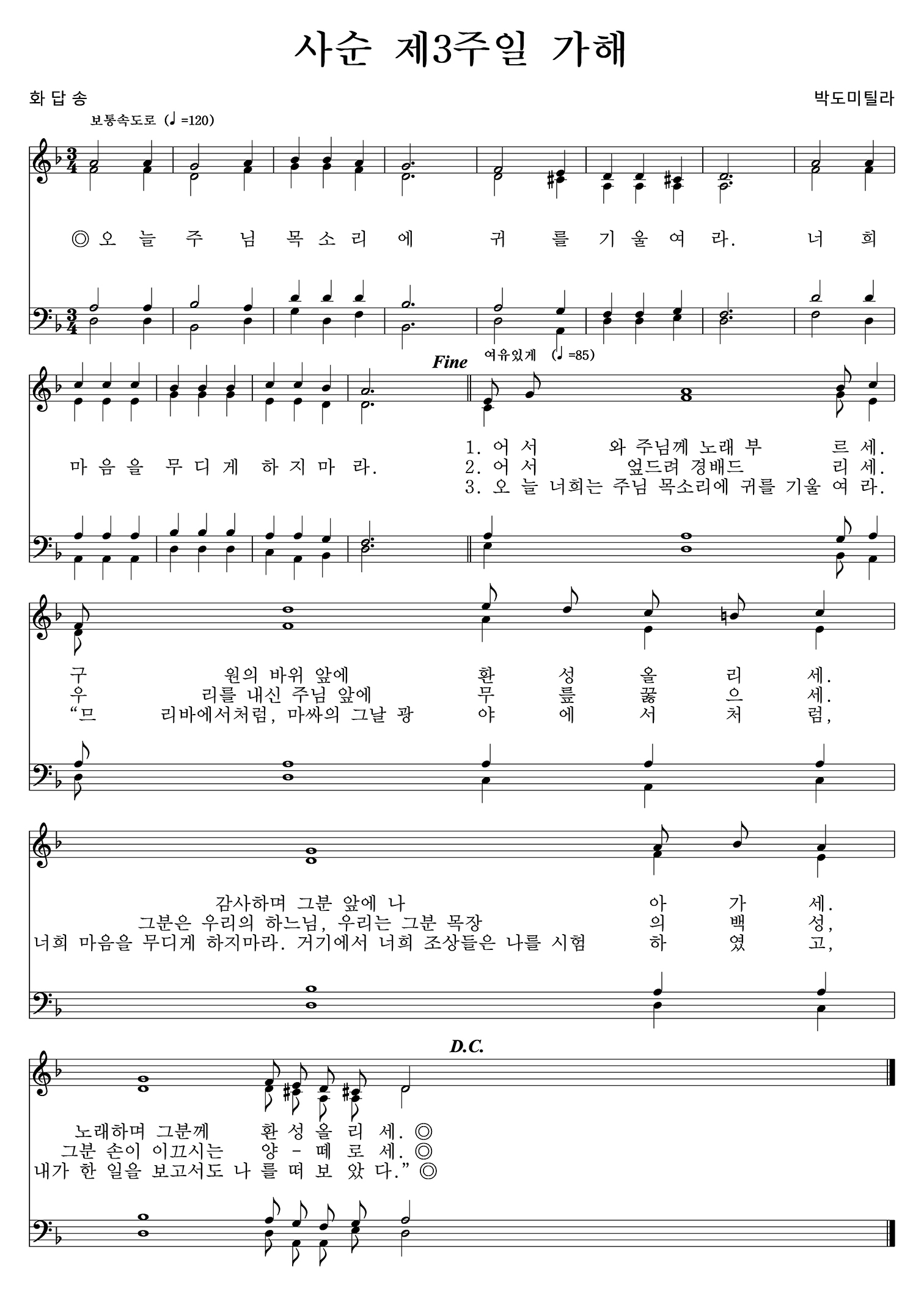 사순 제3주일 화답송. 복음환호송 - 박도미틸라 |