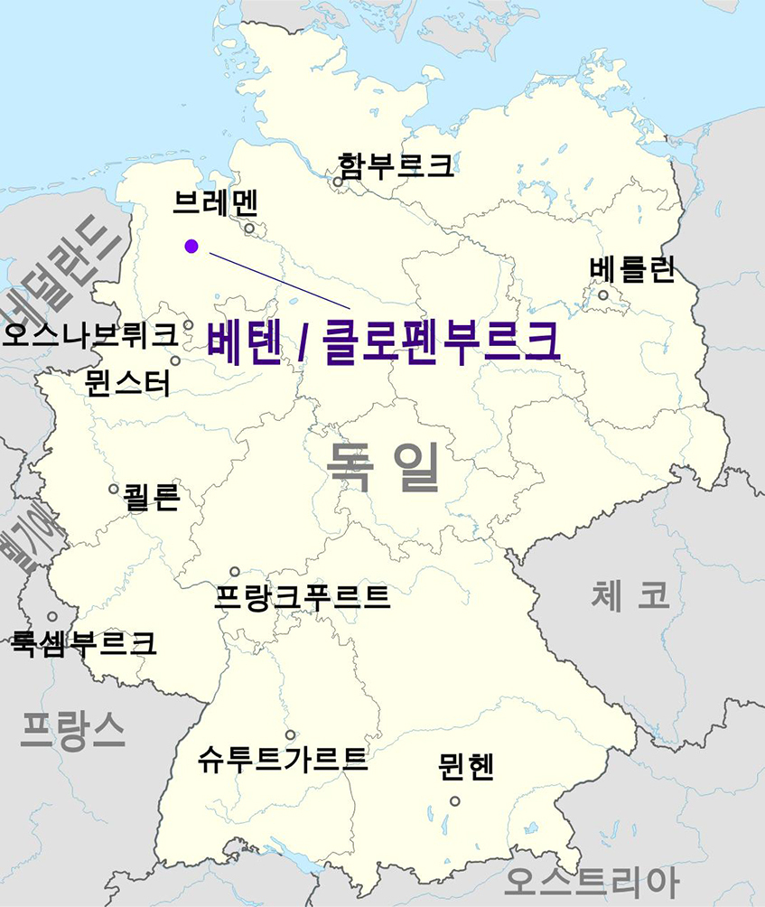 ※ 뮌스터, 브레멘에서 클로펜부르크까지 각각 1시간 10분, 50분 소요. 기차로는 클로펜부르크역까지 와서 버스로 환승(9정거장)
