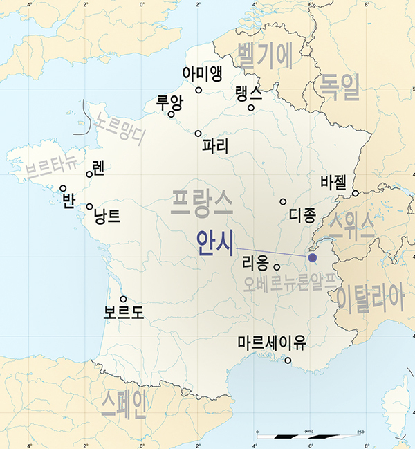 ※ 제네바·로잔에서 1시간 안팎, 리옹·그로노블에서 2시간 안팎. 안시역에서 바실리카까지 26번 버스로 14분 소요. 도보로 구시가지를 지나는 루트는 1.6㎞ 30분 소요.