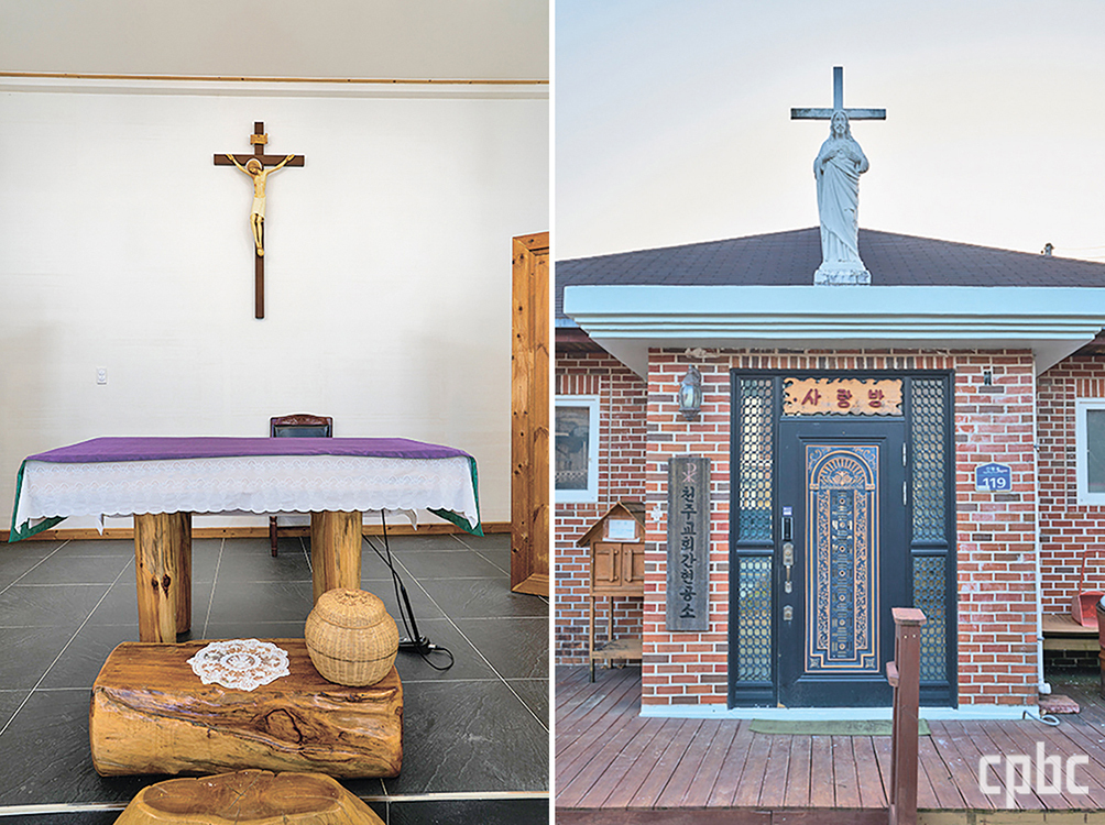 - 특별한 장식없이 소박하게 꾸며진 간현공소 제단과 예수 성심상.