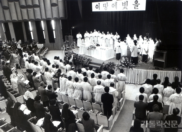 - 1984년 12월 1일 서울 가톨릭 의대 강당 마리아홀에서 거행된 한국천주교회 200주년 기념 사목회의 폐막미사. 가톨릭신문 자료사진