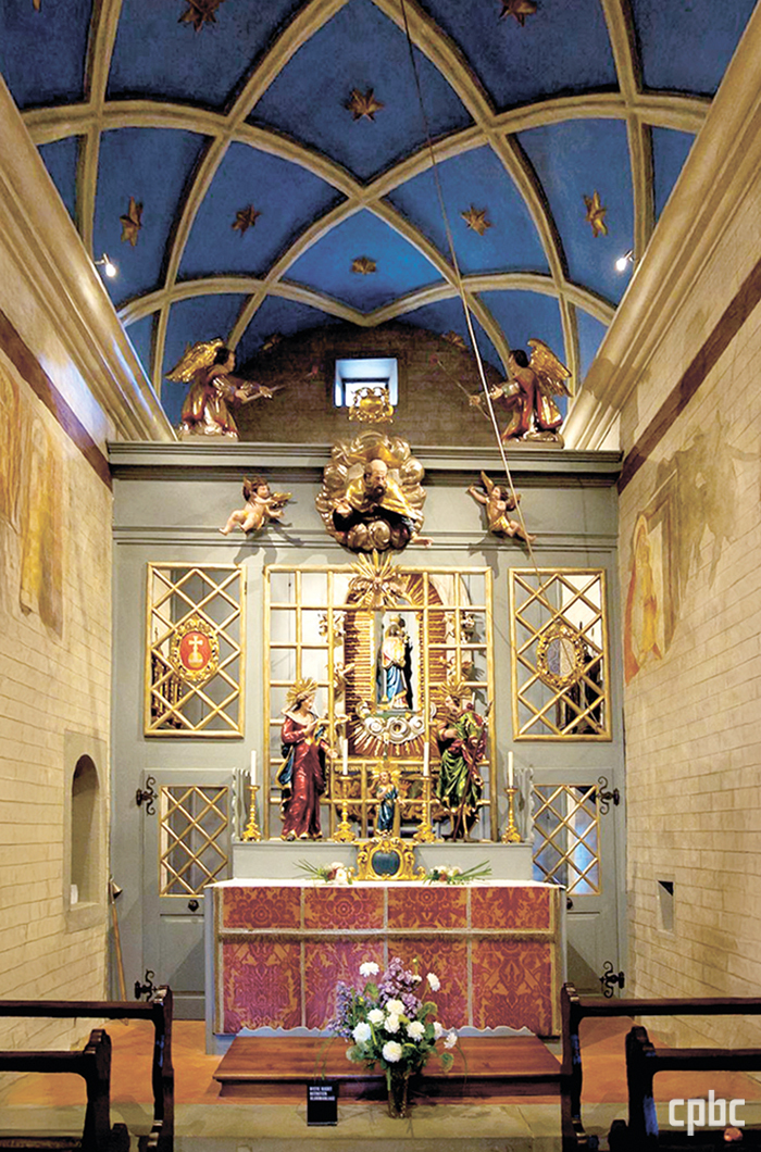 주 제대는 ‘주님 탄생 예고’를 그린 대형 제단화를 중심으로 채색 목조 조각들이 입체적으로 배치되어 있습니다. 성모 마리아의 부모 요아킴과 안나, 요셉과 마리아, 그리고 대천사 미카엘과 라파엘이 한 장면을 이루듯 서 있습니다. 순례자는 이른바 ‘천사의 창’을 통해 성가정의 내부를 들여다볼 수 있습니다.